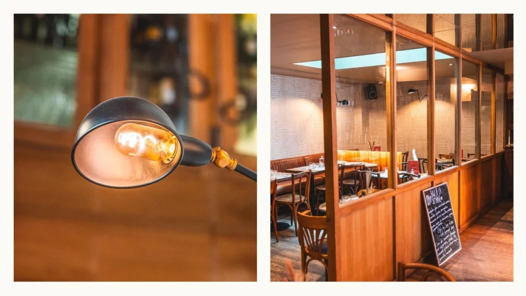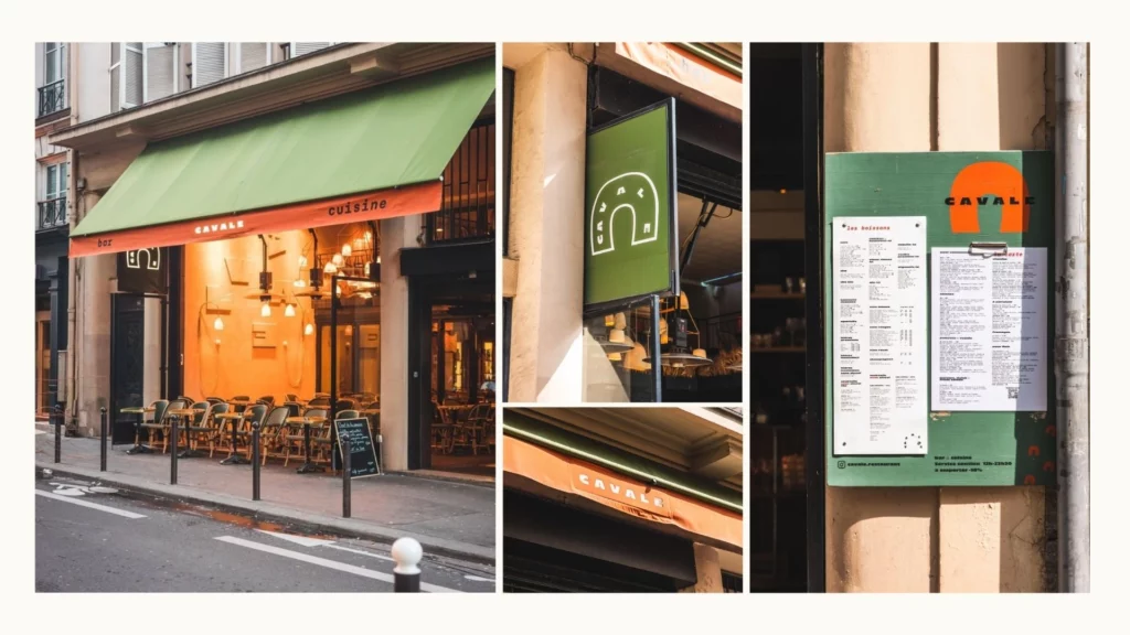 Elle a été pensée comme une véritable carte de visite : un store coloré et des tables installées en terrasse reprennent les codes de la brasserie parisienne et annoncent d’emblée une atmosphère accueillante et soignée.