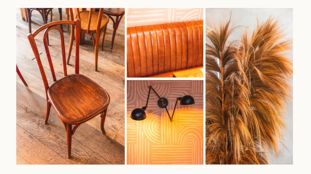 Matériaux utilisés : bois, chaux, miroir, papier-peint, mobilier vintage