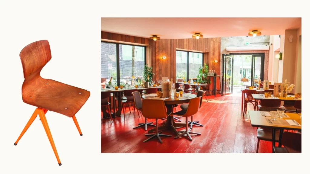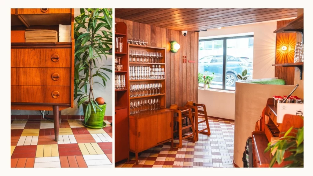 Ces choix, associés à une lumière chaude, créent une atmosphère conviviale et renforcent l’identité seventies du lieu.