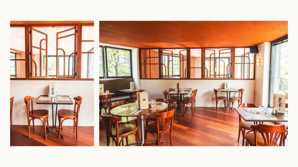 - Une partie a été réhaussée pour mieux organiser les flux et augmenter le nombre de couverts.