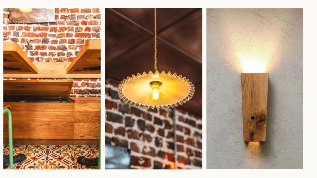 Des luminaires vintage chinés viennent compléter le projet : peu coûteux mais à forte personnalité, ils apportent du caractère et s’intègrent harmonieusement au mobilier sur mesure.